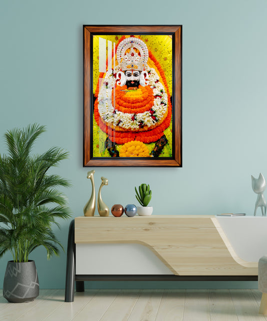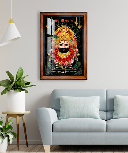 This Khatu Shyam Ji photo frame is designed to bring a serene and devotional ambiance...