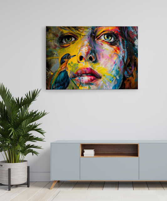 This American woman Canvas Art Print and Back side wooden frame Wall Decor seamlessly combines...