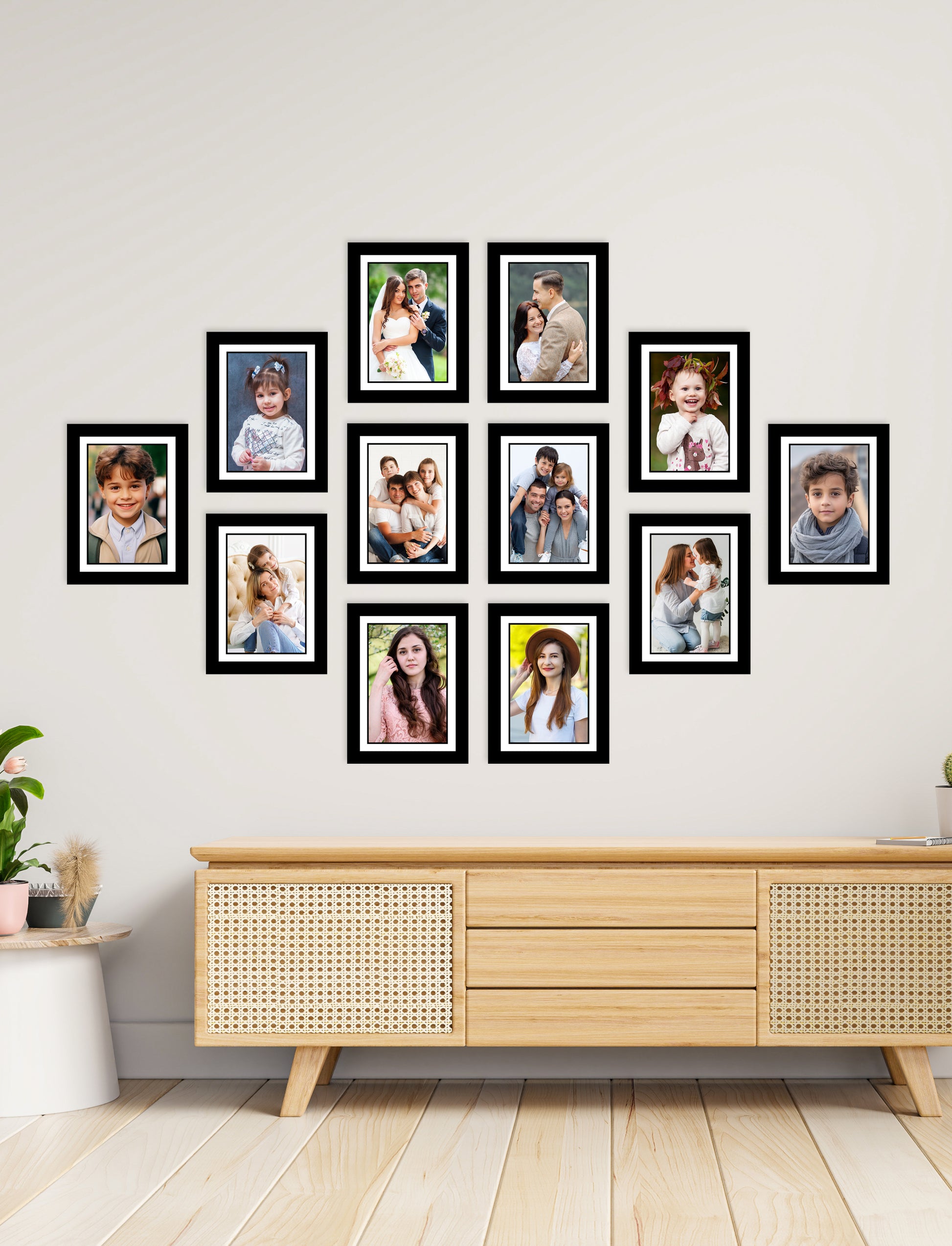 Introducing our Framed Photo Prints, a stunning addition to your home decor. With 10 frames of varying sizes, you can display 10 of your favorite photos in one elegant multi-frame. Enjoy the perfect balance of style and functionality with our expertly crafted frames.