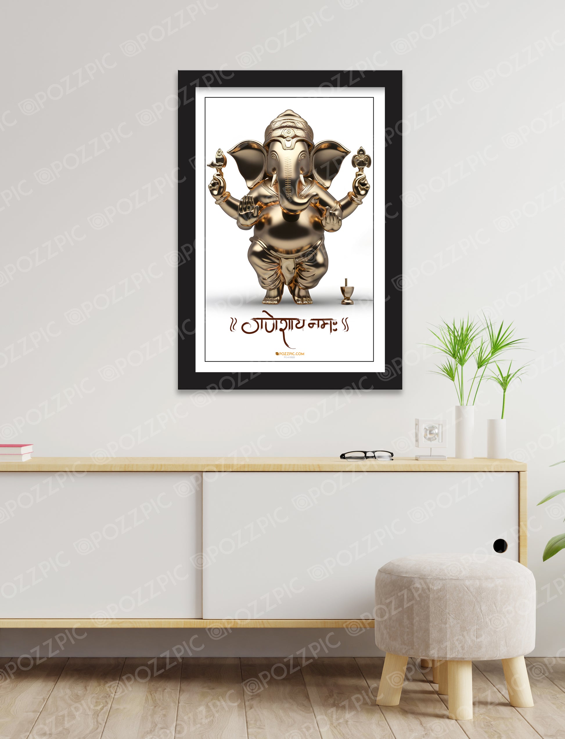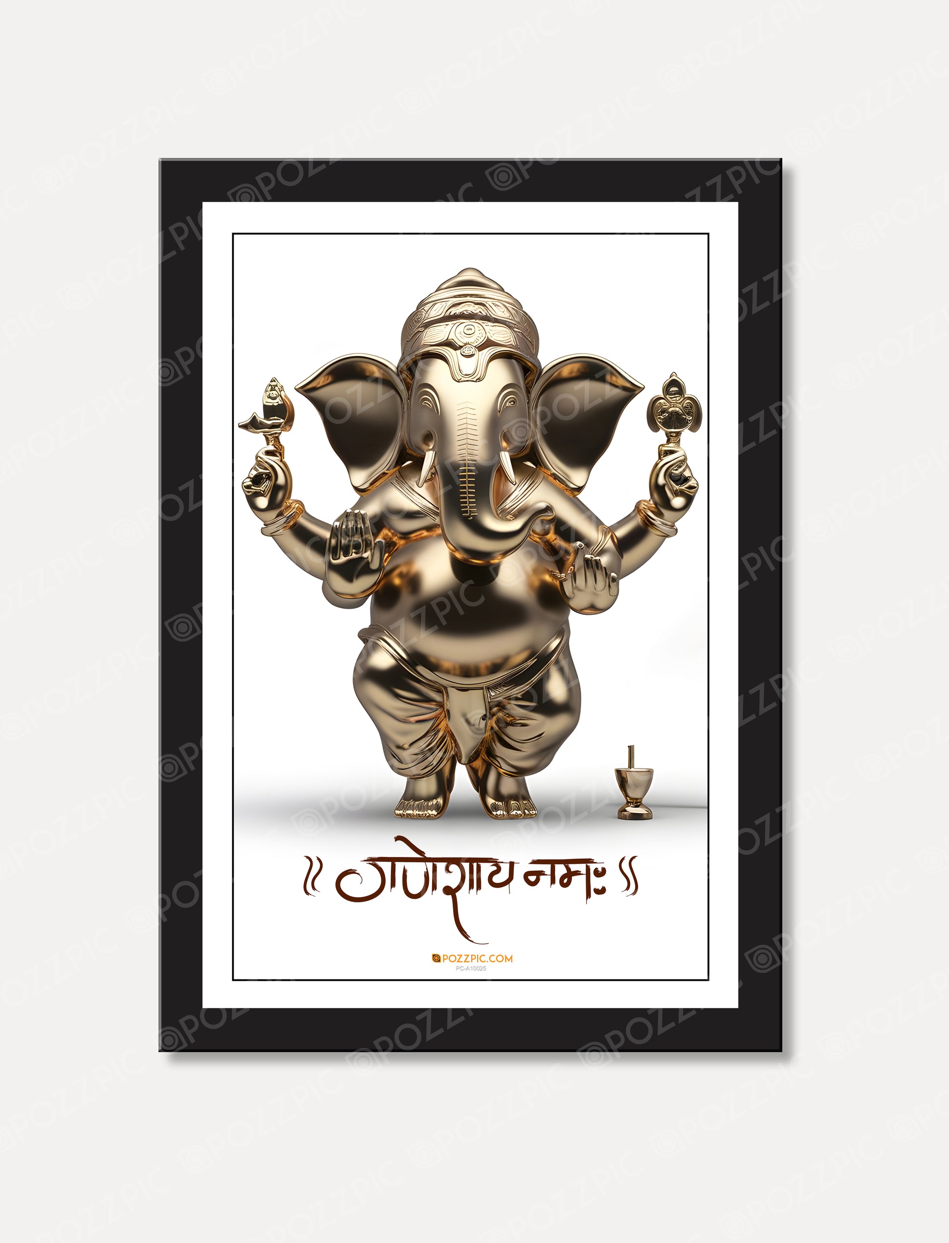 Enhance the aesthetic of your home or office with our Ganesh photo framed in a sleek black frame. The high-quality print of Ganesh, the remover of obstacles, will bring positive energy and blessings to your space. Perfect for daily worship or as a decorative piece.