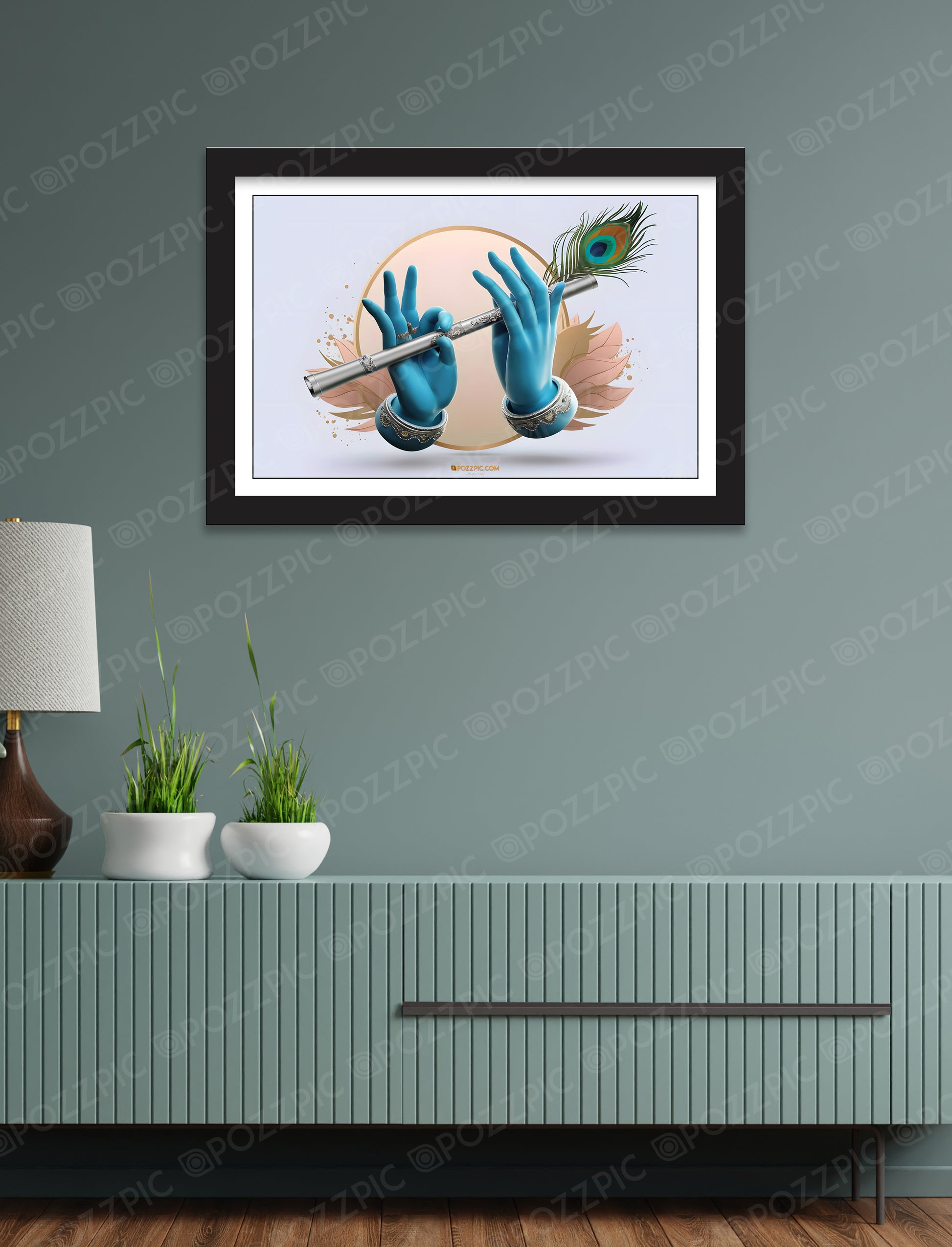 Krishna's hands playing flute with peacock feather f phoo frame Living Room, Bedroom, Home, Office, Hotels