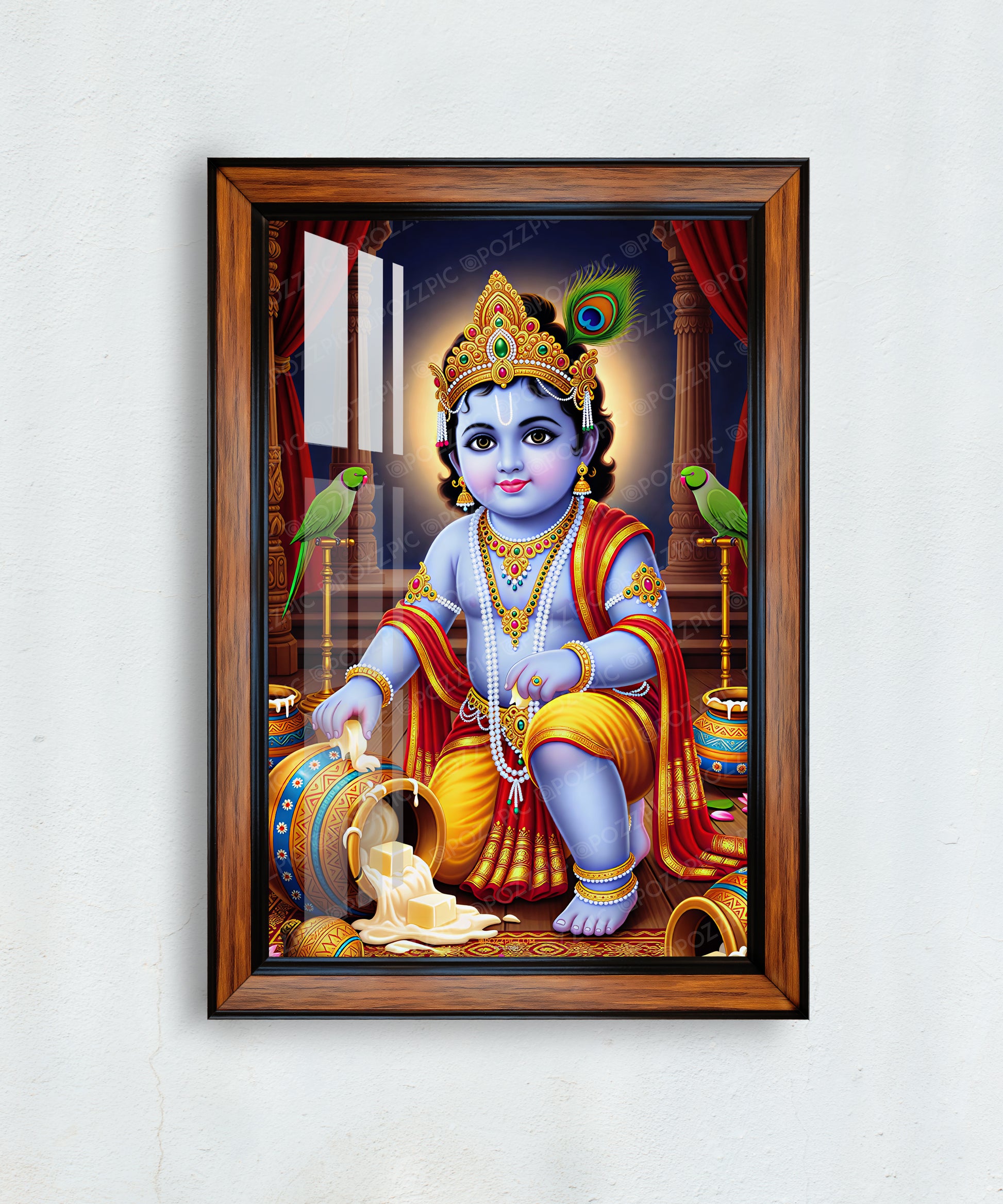 Celebrate devotion and tradition with the Little Krishna Laddu Gopal Photo Frame, an elegant addition to both home and office décor. This thoughtfully designed frame showcases a vibrant image of Laddu Gopal, symbolizing prosperity and joy. Crafted to blend seamlessly with various interior styles, it creates a serene focal point that inspires positivity and spiritual harmony in any space. Ideal for those seeking to infuse their environment with cultural heritage and artistic charm.
