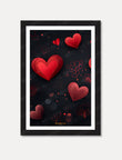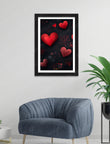 Modern Love Hearts Wall Art Print, Black Frame, Red and Black Romantic Design, 3D EffectLiving Room, Bedroom, Home, Office, Hotels